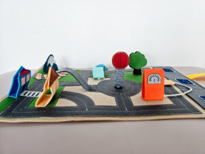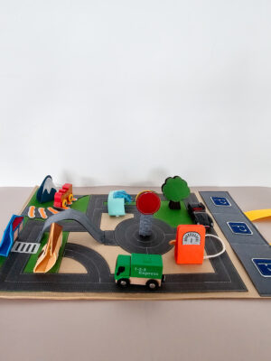 Crafted from eco-friendly felt and designed to close up into a small shoulder bag, it’s the perfect portable playtime companion for young explorers. Watch your child’s imagination flourish as they explore this captivating playscape!